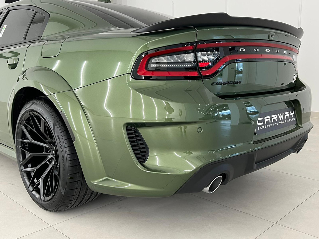 ZGAN 2022 Dodge Charger SRT 392 Widebody is een waanzinnige muscle sedan met bijna 500pk. Prijs is inclusief Nederlands kenteken. Het betreft hier een Europese uitvoering met kilometerteller, alle EU talen, navigatie volledig Europa en fabrieksgarantie. Uw nieuwe auto staat klaar voor vertrek. Stap gerust in, deze Dodge Charger heeft maar 3000 kilometer gelopen. Een achtcilinder benzinemotor en een automatische transmissie zorgen voor de uitstekende prestaties van deze auto. Om het af te maken is deze auto voorzien van een lederen interieur. Een weldaad voor u en uw bijrijder: deze Dodge Charger heeft verwarmbare voorstoelen. De comfortstoelen zorgen voor precies de juiste zit, hoe lang de rit ook is. Een heerlijk luxe optie van deze auto is het verwarmbare stuurwiel. Met de krachtige xenonverlichting rijdt u ontspannen in het donker. In deze Dodge profiteert u onder andere ook van: sportuitlaat, getint glas, zwarte hemelbekleding, LED-achterlichten, elektrisch bedienbare en verwarmde buitenspiegels en LED-dagrijverlichting. Alle audiofuncties zitten onder uw vingertoppen door de audiobediening op het stuur. Het navigatiesysteem geeft duidelijke instructies. Zo komt u veilig en vlot aan waar u moet zijn. De automatische airconditioning zorgt voor een prettige binnentemperatuur. Strak inparkeren wordt een fluitje van een cent door de achteruitrijcamera. Deze Dodge Charger maakt het rijden graag gemakkelijk. Daarom verzorgt de regensensor de mate van ruitreiniging die de ruitenwissers moeten leveren bij neerslag. Autosleutels overbodig. Deze Dodge Charger is voorzien van keyless start. Voor de lange ritten is de cruise control een verademing.