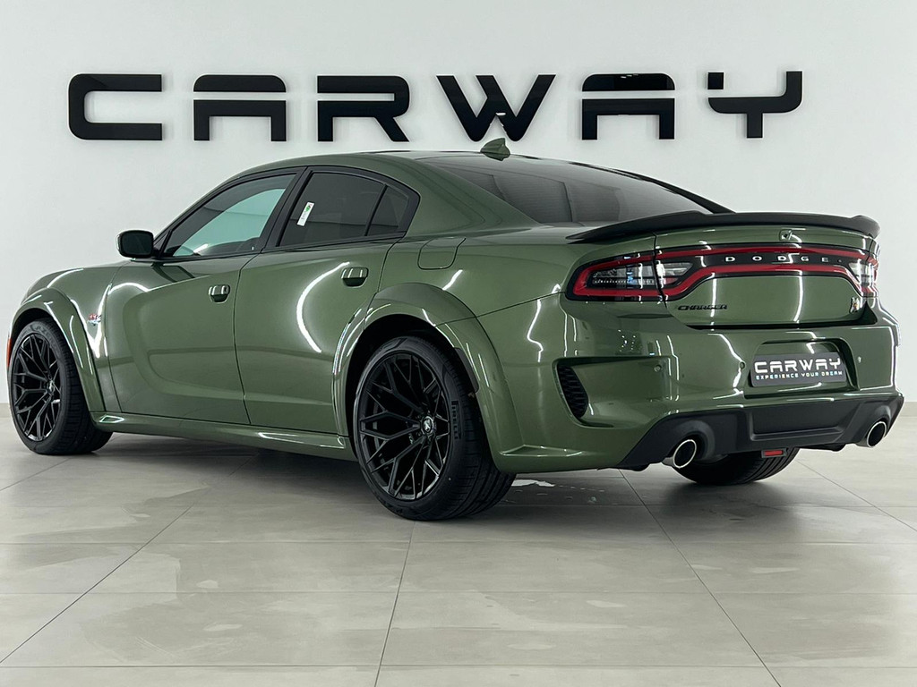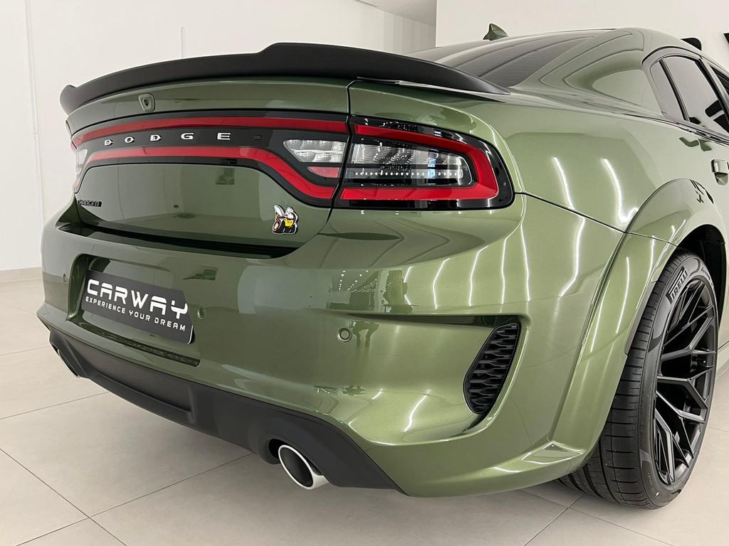 ZGAN 2022 Dodge Charger SRT 392 Widebody is een waanzinnige muscle sedan met bijna 500pk. Prijs is inclusief Nederlands kenteken. Het betreft hier een Europese uitvoering met kilometerteller, alle EU talen, navigatie volledig Europa en fabrieksgarantie. Uw nieuwe auto staat klaar voor vertrek. Stap gerust in, deze Dodge Charger heeft maar 3000 kilometer gelopen. Een achtcilinder benzinemotor en een automatische transmissie zorgen voor de uitstekende prestaties van deze auto. Om het af te maken is deze auto voorzien van een lederen interieur. Een weldaad voor u en uw bijrijder: deze Dodge Charger heeft verwarmbare voorstoelen. De comfortstoelen zorgen voor precies de juiste zit, hoe lang de rit ook is. Een heerlijk luxe optie van deze auto is het verwarmbare stuurwiel. Met de krachtige xenonverlichting rijdt u ontspannen in het donker. In deze Dodge profiteert u onder andere ook van: sportuitlaat, getint glas, zwarte hemelbekleding, LED-achterlichten, elektrisch bedienbare en verwarmde buitenspiegels en LED-dagrijverlichting. Alle audiofuncties zitten onder uw vingertoppen door de audiobediening op het stuur. Het navigatiesysteem geeft duidelijke instructies. Zo komt u veilig en vlot aan waar u moet zijn. De automatische airconditioning zorgt voor een prettige binnentemperatuur. Strak inparkeren wordt een fluitje van een cent door de achteruitrijcamera. Deze Dodge Charger maakt het rijden graag gemakkelijk. Daarom verzorgt de regensensor de mate van ruitreiniging die de ruitenwissers moeten leveren bij neerslag. Autosleutels overbodig. Deze Dodge Charger is voorzien van keyless start. Voor de lange ritten is de cruise control een verademing.